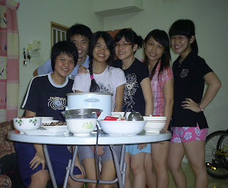 "SURPRISE~~~!!!"siu members shouted. i get shocked, and dunno should give what respond to them.. but in my heart, i feel very happy, so excited and so touching to see them prepare the steamboat for my belated birthday.. ^^ hurey!!!!! lets MAKAN!! hahahaha... i believe they also very very hungry while preparing all the food for steamboat, just it is still raw, cant eat like tat... pity them...